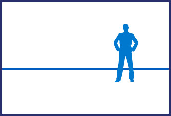 La figura seguente rappresenta la combinazione di quanto sopra. Si tratta di un'inquadratura ben composta secondo tradizionali canoni d'equilibrio. Prego considerare che se si sceglie di inquadrare verticalmente, il risultato presenta un impatto dinamico maggiore. Naturalmente, questa scelta é da compiere in funzione del soggetto della ripresa.