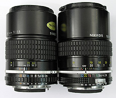 La diversa colorazione degli indici del diaframma permette di capire immediatamente se si tratta di ottiche AI o AIS: a sinistra un'ottica AIS. |