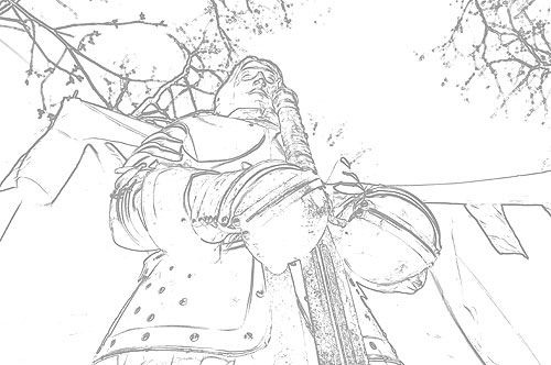 Con questo menu è possibile ottenere un'immagine in cui dello scatto originale vengono salvati solo i contorni principali del o dei soggetti. Ne abbiamo già visto un esempio nel capitolo dedicato al Fisheye.