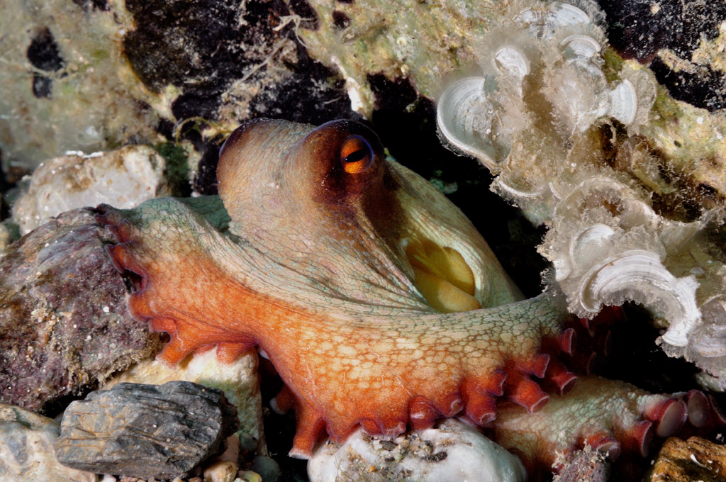 Passo ben presto a focali più spinte portando al massimo lo zoom dell'obiettivo: l'ampio comando dell'oblò Nimar è facile da utilizzare anche con i guanti in neoprene. Con focale da 105 mm le immagini sono davvero interessanti: buona la qualità e eccezionale la possibilità di sfruttare al massimo la minima distanza di messa a fuoco dell'obiettivo. Noto un po' di backscatter dovuto alla sospensione e al fatto che non utilizzo un apposito diffusore flash.