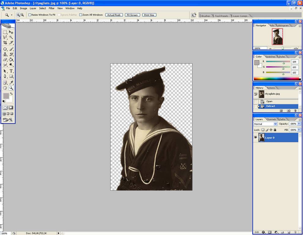 A questo punto utilizziamo il filtro estrai per gettare lo sfondo e tenere solo la figura principale (il filtro è molto potente e nesessita di un po' di manualità ma offre buone prospettive)