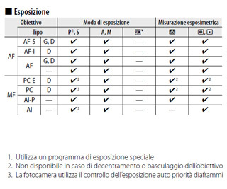 Con questi obiettivi, che sono dell’ultima generazione, è possibile lavorare tanto in modalità autofocus che manual focus e con tutti i sistemi di misurazione esposimetrica. La modalità di messa a fuoco deve essere impostata su AF-S (AF singolo) e il modo area AF è fissato sul punto AF singolo con impiego del solo punto AF centrale. È inoltre possibile attivare il sistema di riduzione delle vibrazioni VR, se presente sull’obiettivo.