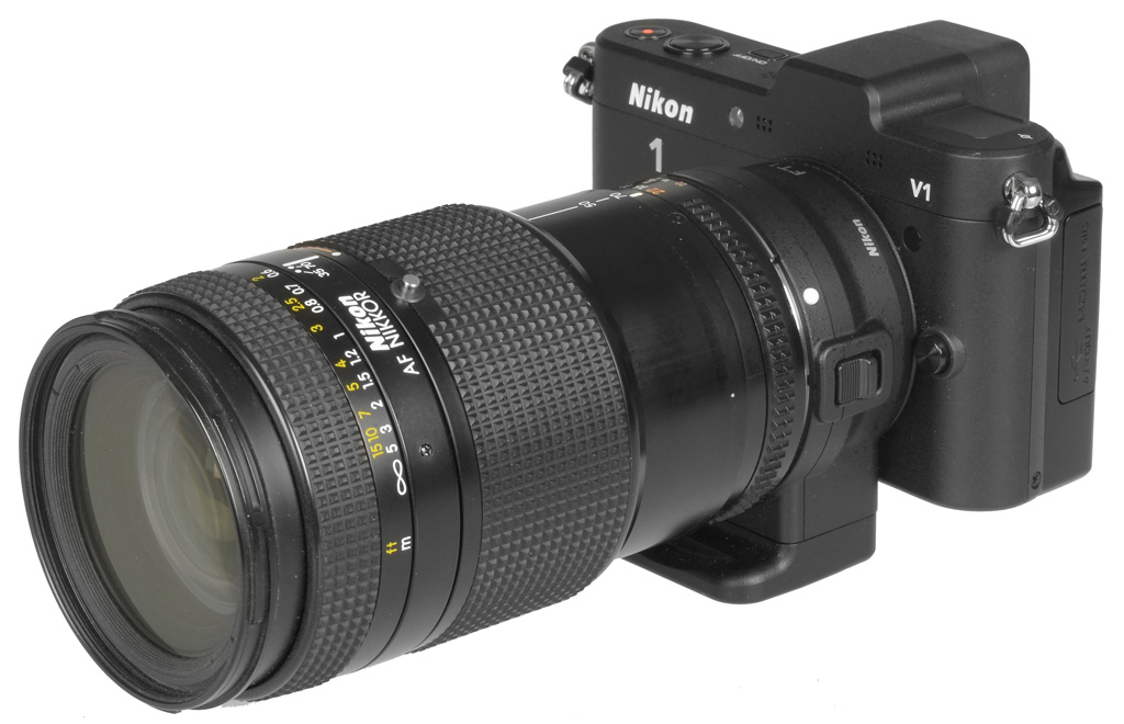 ![]() Nikon 1 V1 con FT-1, moltiplicatore di focale TC-20 e obiettivo catadiottrico Nikkor Reflex 500mm f/8. |
