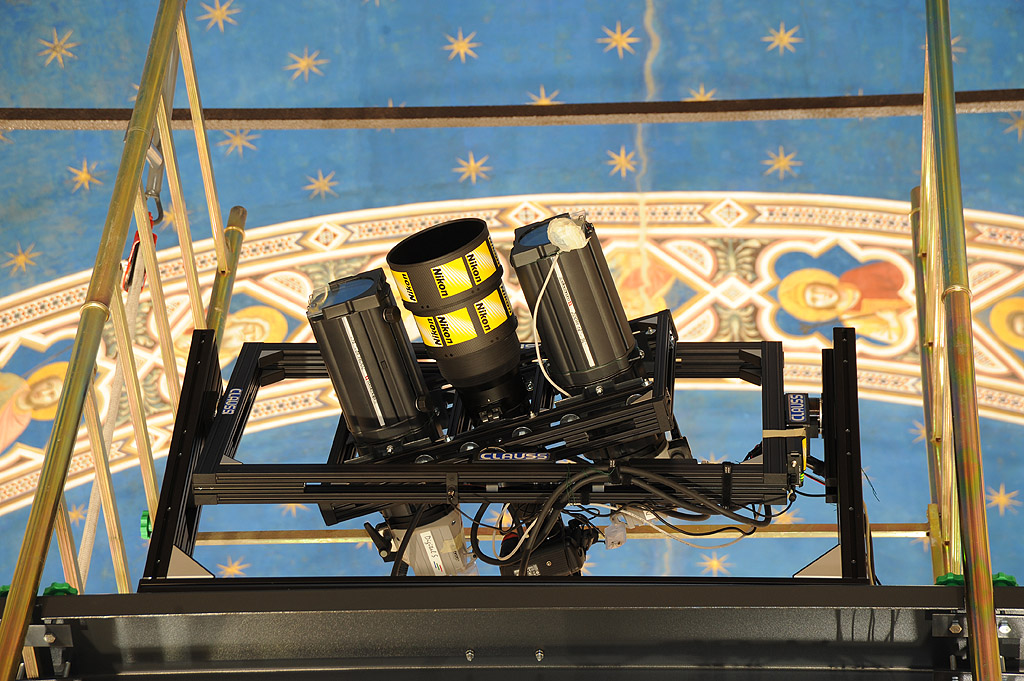 e alla fine di una “scansione” di una porzione sommitale dell'affresco; la Nikon D3x si muove solidale