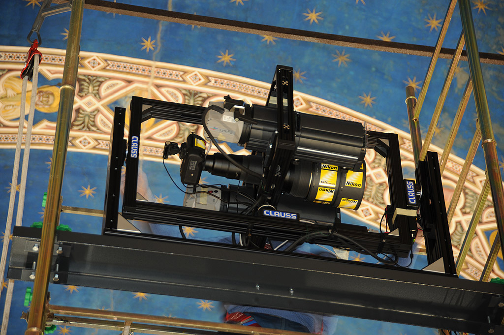 I flash monotorcia impiegati erano solidali alla fotocamera, come dei giganteschi lampeggiatori Nikon SB, e si muovevano insieme ad essa. Uno dei motivi per cui è stato necessario ricorrere a delle potenti e pesanti monotorce rispetto ai più agili Nikon SB è ovviamente per la necessità di poter disporre di un NG, meglio ancora, di un numero di Joule che riuscissero a raggiungere con la stessa coerenza anche gli angoli dell'affresco più distanti dalla fotocamera.