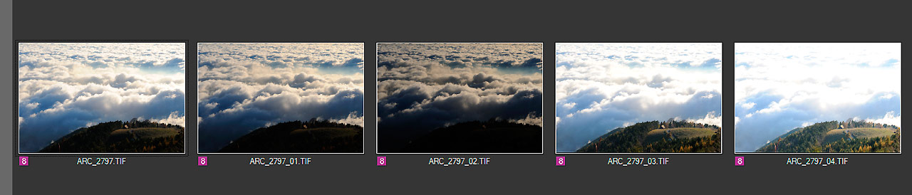 La "creazione" dei diversi file Tiff a 16 bit per l'HDR con lo strumento "compensazione esposizione".