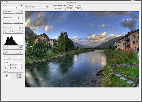 La schermata del Plug-in Tone Mapping di Photomatix differisce graficamente