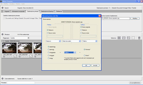 Rinominare i file recuperati da Image Rescue con Nikon Transfer