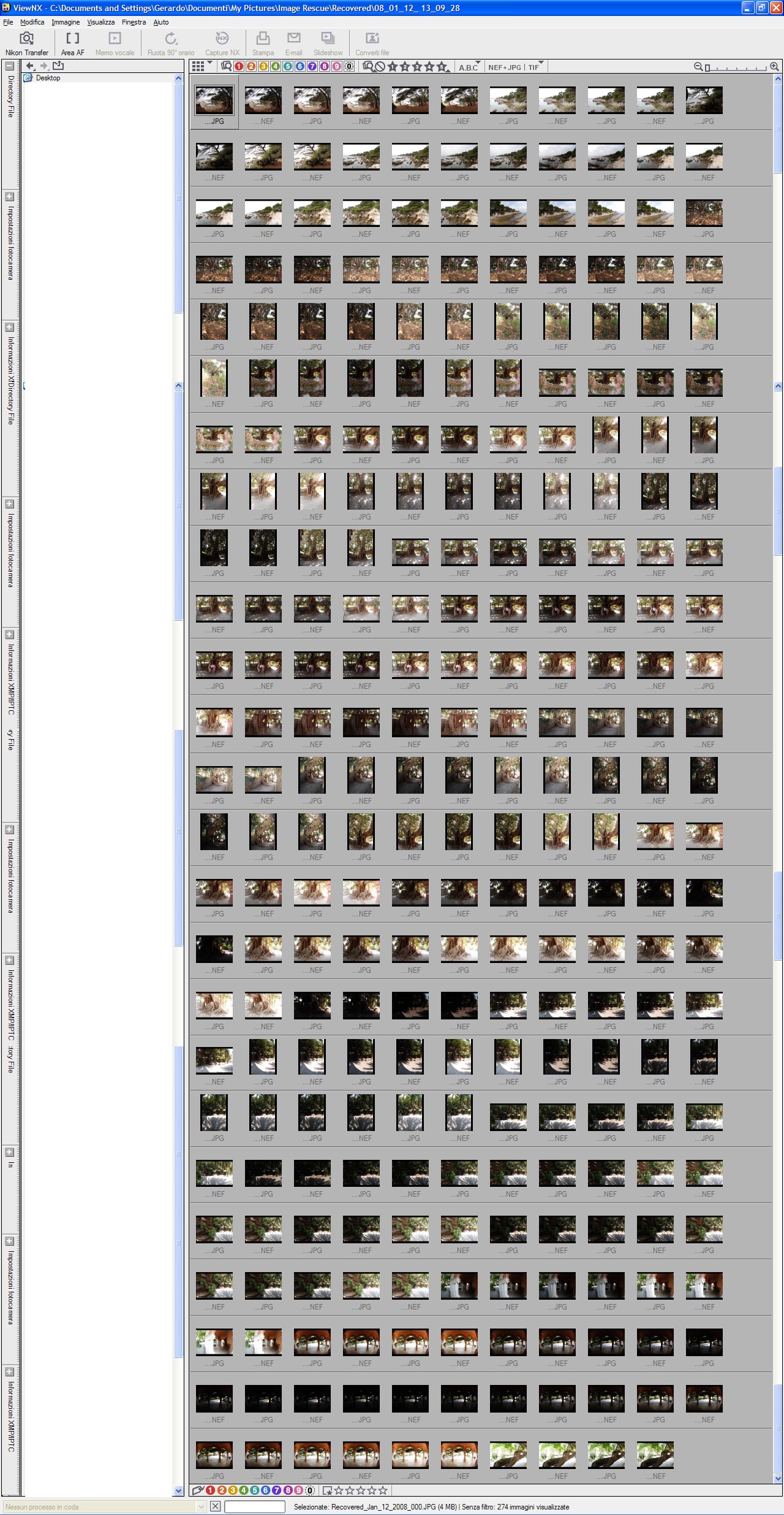 Scorrendo l'elenco delle anteprime si visualizzano le ultime immagini recuperate: sono esattamente le stesse visualizzate in ViewNX.