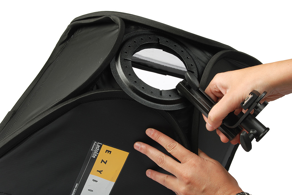 L'EzyBox Hotshoe in due parole è un Bank quadrato, con area utile di 38cm per lato, ripiegabile.