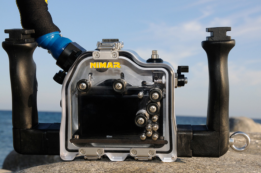 Solida, ben rifinita e pratica. Sono queste le caratteristiche fondamentali che contraddistinguono la nuova custodia NIJ1 prodotta da NiMAR. Uno scafandro che, grazie a vari accessori opzionali, si trasforma in un completo Kit photosub. Per utilizzare al meglio Nikon 1 J1 in immersione, la custodia viene, infatti, proposta in Kit, affiancandole l’indispensabile oblò piano in grado di ospitare lo Zoom 1 Nikkor VR 10-30mm f/3.5-5.6. Utilizzando la leva posta a sinistra dell’oblò, saremo in grado di lavorare direttamente sulla regolazione dello Zoom e spaziare dalla fotografia ravvicinata alle immagini grandangolari. Per sfruttare le caratteristiche grandangolari e la luminosità dell’ottica 1 Nikkor 10 mm f/2.8, NiMAR ha progettato un apposito oblò sferico. Grazie all’oblò opzionale sarà, dunque, possibile sfruttare le eccelse qualità grandangolari di questa ottica 1 Nikkor, sia per scatti ravvicinati che per panoramiche subacquee. La linea di accessori dedicata alla custodia NIJ1 non finisce qui: oltre al parco ottiche è possibile utilizzare i braccetti flash in carbonio che NiMAR produce e propone per le sue diverse custodie subacquee. Le maniglie plastiche fissate su NIJ1, oltre a poter essere smontate facilmente per il trasporto grazie ad una vite a brugola, sono dotate di un attacco a slitta alla quale poter collegare i bracci telescopici NiMAR o di altre marche.