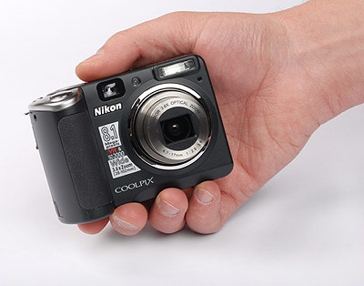 La P50 in mano: la fotocamera è dotata di impugnatura ergonomica gommata e le dimensioni contenute