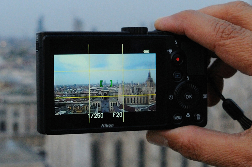 La macchina va mantenuta il più possibile allineata all’orizzonte nelle foto panoramiche orizzontali, o lungo una linea virtuale perpendicolare al suolo nelle panoramiche verticali. Le linee guide orizzontali e verticali che compaiono sul display ci possono aiutare a mantenere la fotocamera parallela al movimento di “strisciata” che staremo effettuando. Se per qualche motivo la fotocamera non sarà in grado di completare tutto l’angolo previsto, una parte dell’immagine risulterà nera, senza per questo “rovinare” il panorama parziale ottenuto: sarà sufficiente, una volta scaricata l’immagine sul computer, tagliare la parte incompiuta e salvare la parte utilizzabile.
