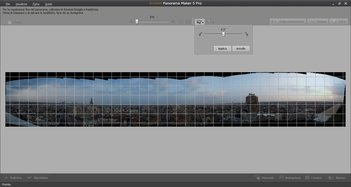 Se l’orizzonte risultasse inclinato verso destra o verso sinistra, con un altro strumento automatico di Panorama