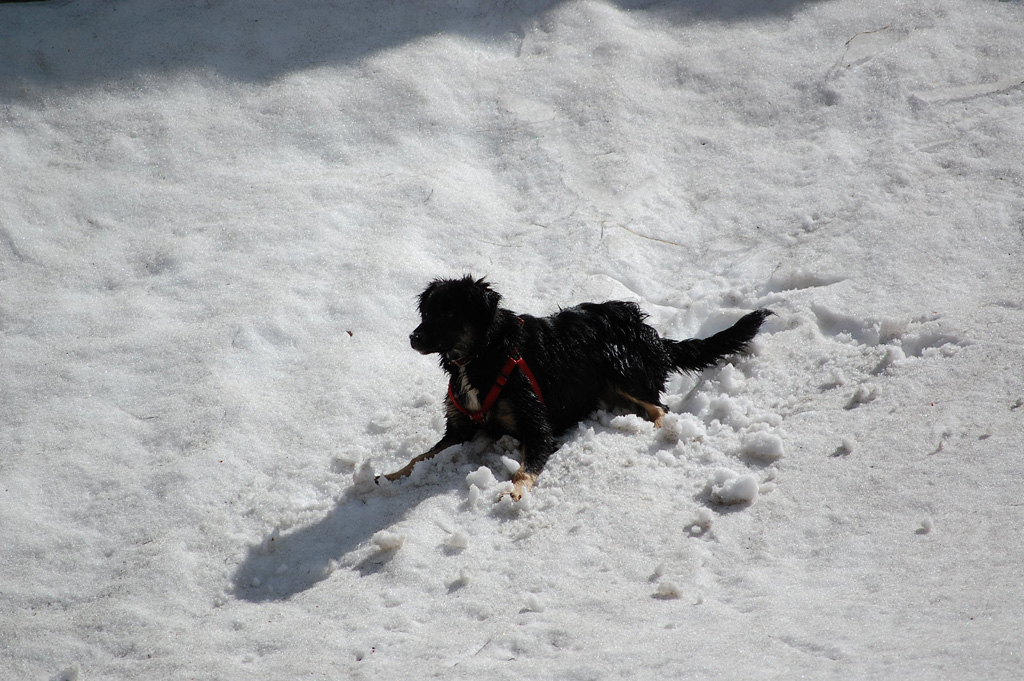 situazione di scatto particolare: un soggetto piccolo e nero su neve.