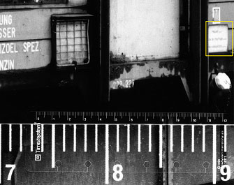 Foto n.7: inserendo nel portanegativi dell’ingranditore un righello trasparente possiamo determinare sulla stampa finale le reali dimensioni di ogni singolo dettaglio sul negativo