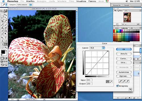 La fotografia, portata sul monitor del computer, potrà essere "lavorata" e corretta a piacimento intervenendo con i