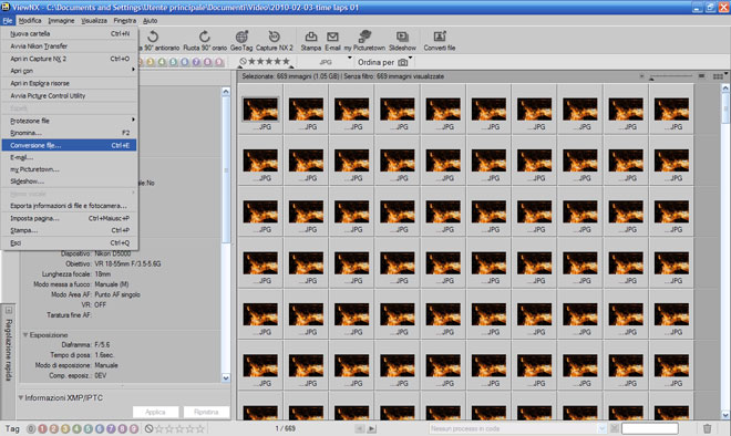 apriamo la sequenza in Nikon ViewNX.