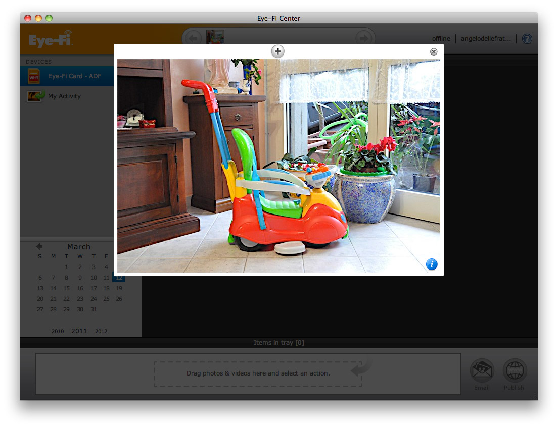 A pochi secondi dal primo scatto vedrete apparire nella homepage di "Eye-Fi Center" la foto appena scattata.