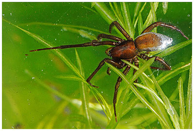 Un buon esempio è la sequenza in cattività che racconta lo straordinario accoppiamento del ragno pescatore, Ancylometes sp., una serie di scatti particolare, perché documenta il curioso comportamento di questa specie: il maschio immobilizza la femmina con la sua tela prima di accoppiarsi, per prevenire comportamenti aggressivi.