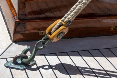 Roberta invece è a bordo di Puritan, con le sue due D500, una corredata del versatile tele Nikon 18-200mm VR II e l'altra con un grandangolo Nikon 12-24mm f/4. Li usa alternativamente per incorniciare le altre barche tra cime e bozzelli sfocati in primo piano, per riprendere le manovre dei marinai, i dettagli o la maestosità delle vele auriche che si stagliano nel blu del cielo. Fotografare a bordo non è affatto facile, perché la prima regola è non intralciare le operazioni di regata: muoversi in uno spazio limitato, scivoloso, inclinato, in mezzo a cime e legni vari, con molte persone che corrono indaffarate ovunque, richiede un'esperienza marinaresca ancor prima che fotografica. Il tipo di inquadrature a bordo, se la barca fosse stata ferma in porto, sarebbe stato quello ideale per il Nikon 35 mm f1.4 ma in mare diventa di difficile gestione.